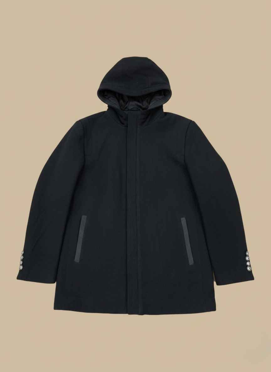 Don’t settle for average winter wear; experience the elite comfort and protection of the Gelani’s black hooded wool coat for men.
