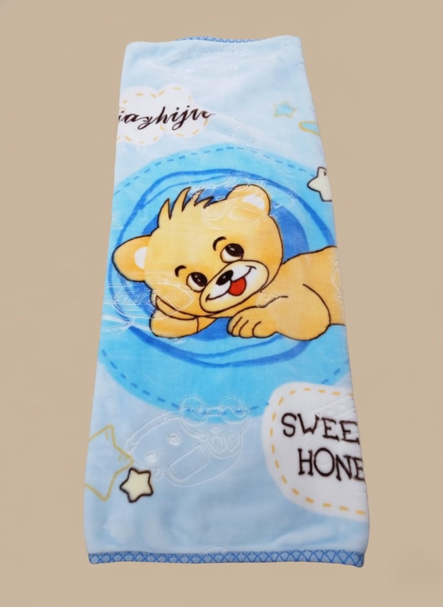 Ultra-soft plush fleece baby blanket with a cute cartoon bear design. Perfect for swaddling, naps, or as a comforting stroller throw. Gentle, warm, and machine washable.