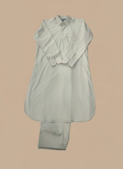 • Beige Men's Traditional Suit (Shalwar Kameez) on a light background, classic fit kurta with band collar, button placket, and matching trousers Premium Beige Men's Traditional Suit - Classic Fit Shalwar Kameez ₨ 6,490 Original price was: ₨ 6,490.₨ 5,490Current price is: ₨ 5,490.