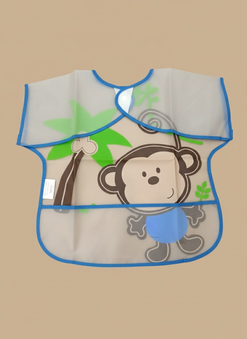 Keep messes away with this long-sleeve waterproof feeding bib featuring a cute monkey design. Easy to clean and provides full coverage for infants and toddlers during mealtime.