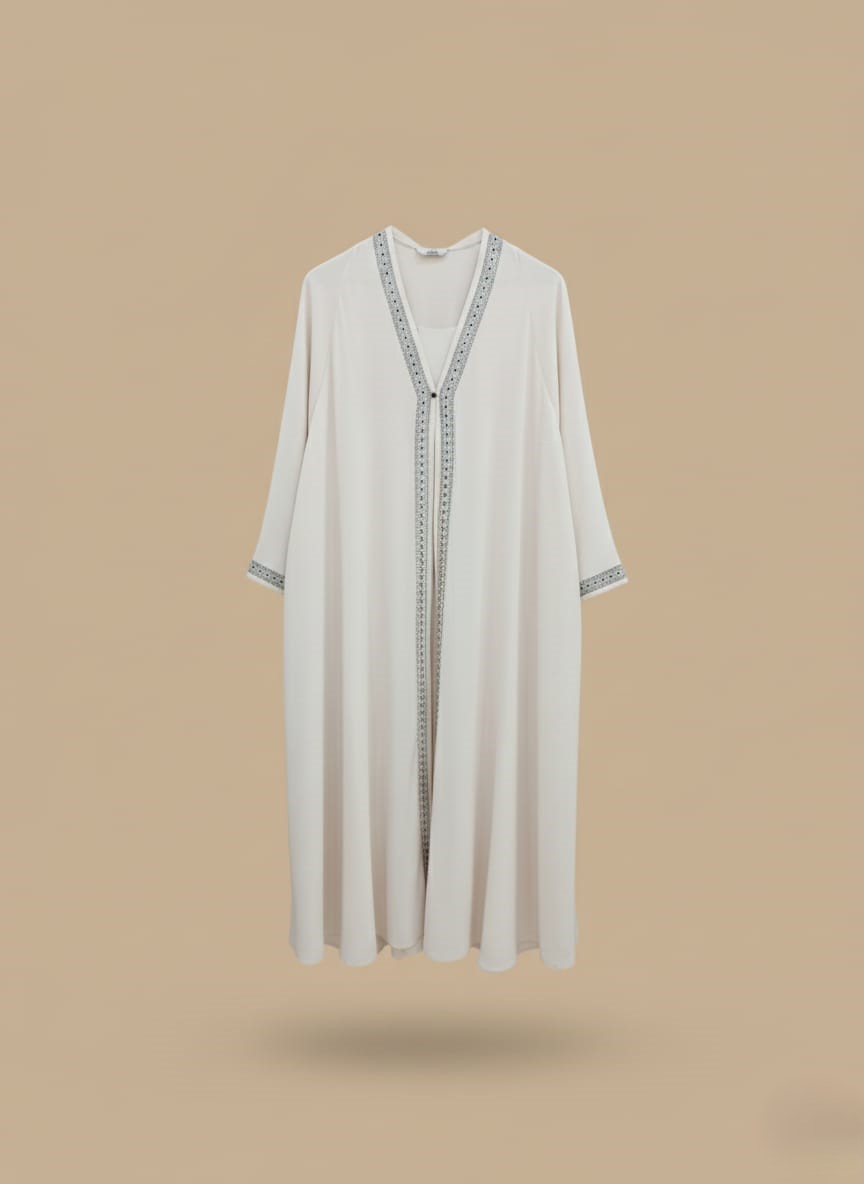 Elevate your modest wardrobe with our Belted Woman Abaya, a crepe kimono sweater that balances everyday comfort and evening elegance. Designed for the modern Muslimah, this open-front woman abaya skims gracefully to mid-calf, giving you coverage without bulk. The matte crepe fabric is fully opaque yet feather-light, so you stay cool from office commute to sunset prayer. Wide kimono sleeves create fluid movement, while the removable self-tie belt lets you shift from relaxed layering to a defined waist in seconds. Deep side pockets hide your phone and keys, keeping the silhouette sleek. Style this neutral-toned sweater abaya over jeans and sneakers for street-chic modesty or layer it above an evening dress for instant sophistication. Machine-wash cold, hang dry, and enjoy wrinkle-resistant wear season after season.