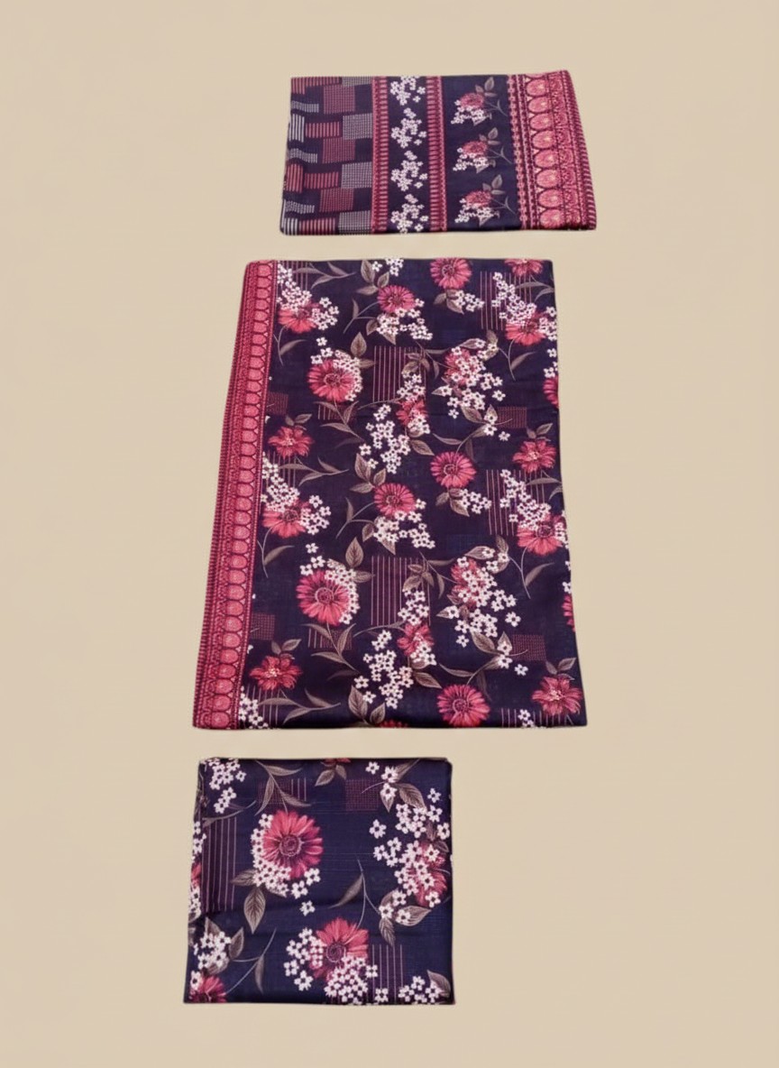 Stay warm and stylish this winter with the Binsaeed Khaddar Unstitched 3-piece floral print suit. Features premium Khaddar fabric in a dark blue base with pink and white floral patterns. Perfect for custom tailoring a comfortable and elegant winter outfit.