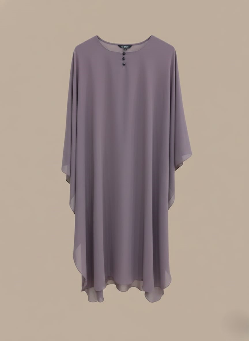 Embrace effortless elegance with our Chic Lavender Kaftan Abaya. This beautiful modest dress features a contemporary round neck design with subtle button detailing, adding a touch of sophistication to its minimalist aesthetic. The flowing batwing sleeves create a graceful silhouette, offering both comfort and an elegant drape that is perfect for any occasion. Crafted from lightweight, breathable fabric in a serene lavender shade, this kaftan abaya ensures maximum comfort while maintaining a stylish and modest look. Whether for daily wear, special events, or quiet evenings, this versatile piece is a must-have addition to your wardrobe, blending modern fashion with traditional grace. Experience ultimate comfort and style with this unique kaftan abaya.