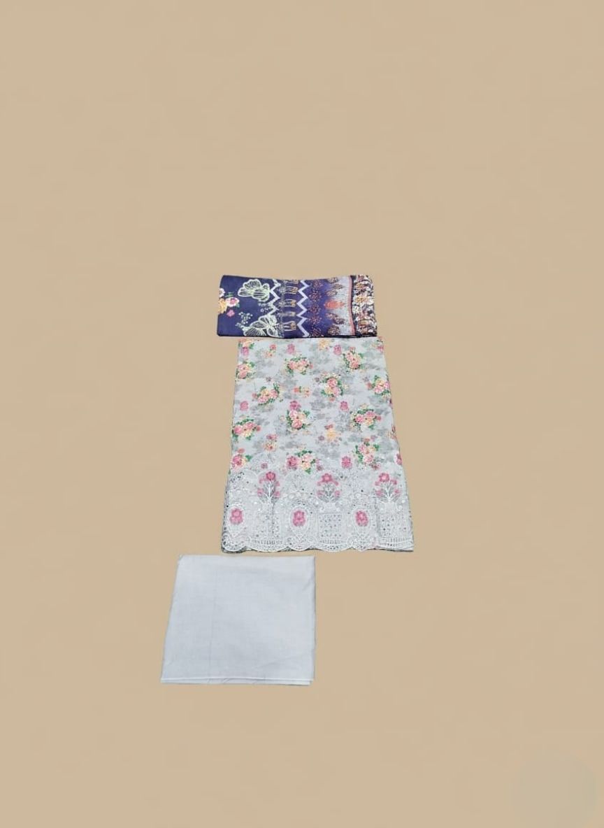 Elegant Embroidered Chikan Kari Suit with Floral Prints – Unstitched 3-Piece