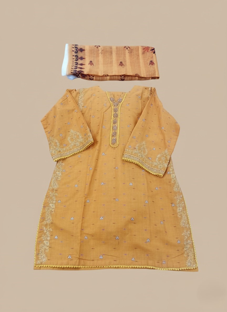 Be the first to review “Elegant Mustard Embroidered Cotton 3PC Suit with Chiffon Dupatta” Cancel reply