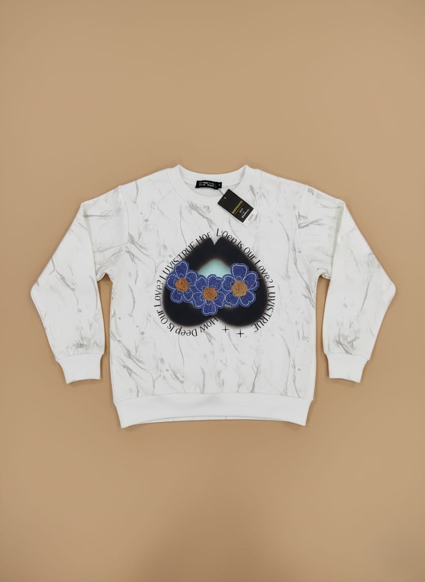 Stylish and comfortable kids marble print sweater featuring a unique marble pattern and a sweet heart design. Made from a soft cotton blend, this cozy sweater is perfect for everyday wear.