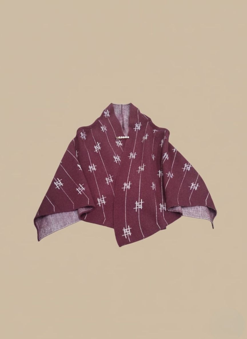 Knit Cap shawl for Women – Open-Front Shawl Cape with Geometric Pattern