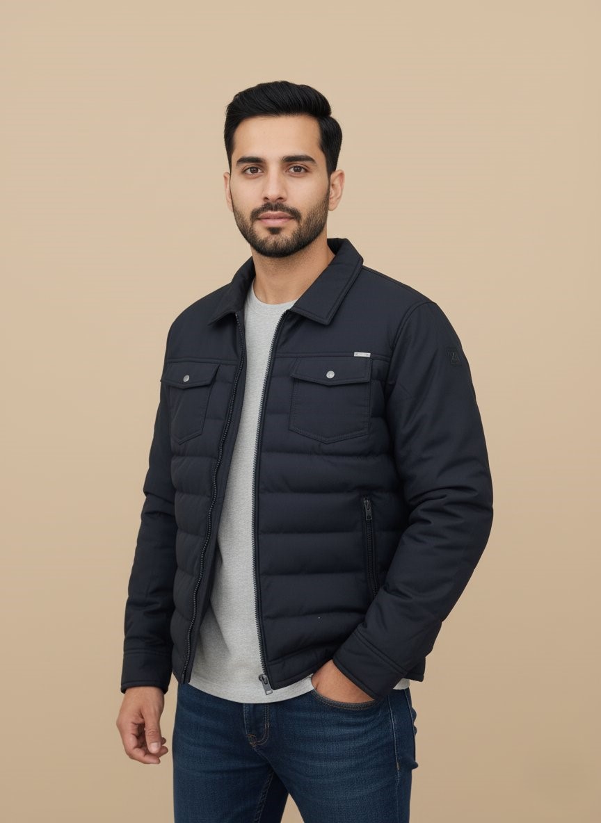 Embrace the cold in style with our premium men’s black puffer jacket. Designed for both warmth and modern aesthetics, this versatile jacket is an essential addition to any man’s winter wardrobe. Crafted with a lightweight quilted design, it provides excellent insulation without the bulk, ensuring maximum comfort and freedom of movement. The rich black hue offers a sophisticated look that pairs effortlessly with a variety of outfits, from casual jeans to more semi-formal attire. Featuring a full-zip front, multiple practical pockets, and a comfortable collar, this puffer jacket is built for convenience and durability. Whether you’re commuting to work, enjoying a weekend getaway, or simply running errands, our men’s black puffer jacket will keep you cozy and looking sharp. It’s the ideal lightweight winter coat for transitioning seasons and chilly days.