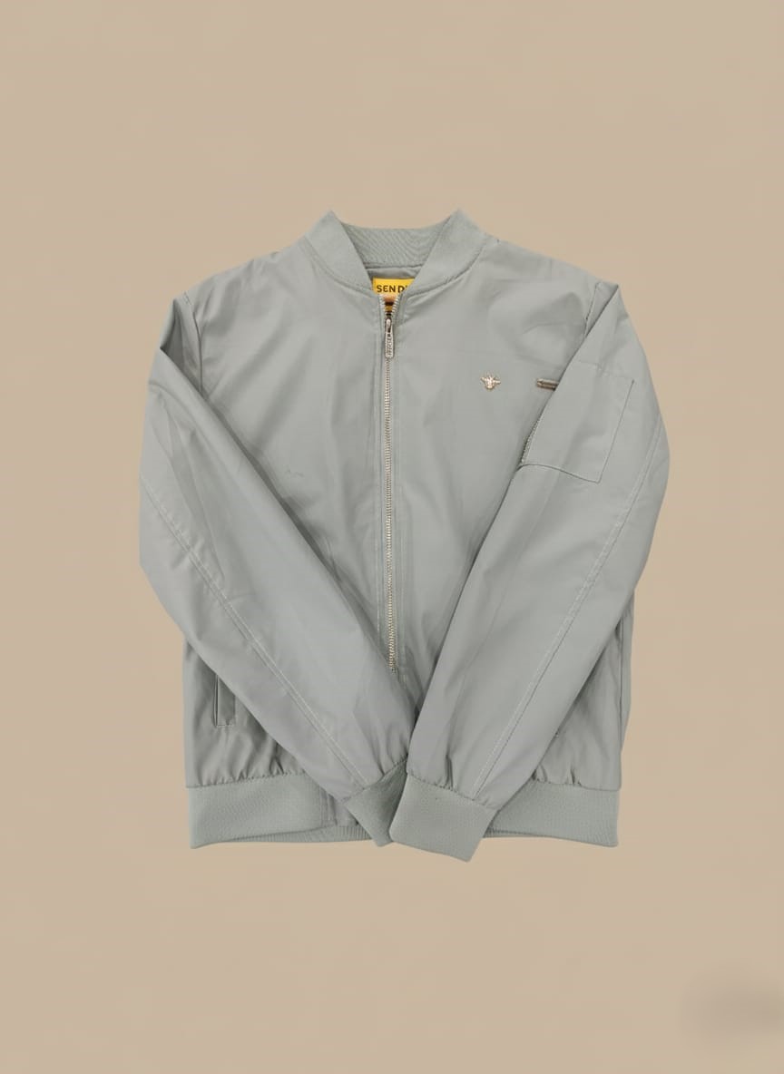 Stay stylish and comfortable with our Men’s Lightweight Bomber Jacket. This light grey full-zip coat features a classic ribbed trim, subtle emblem detail, and a sleek design, perfect for casual wear and layering. A versatile men’s lightweight bomber jacket.