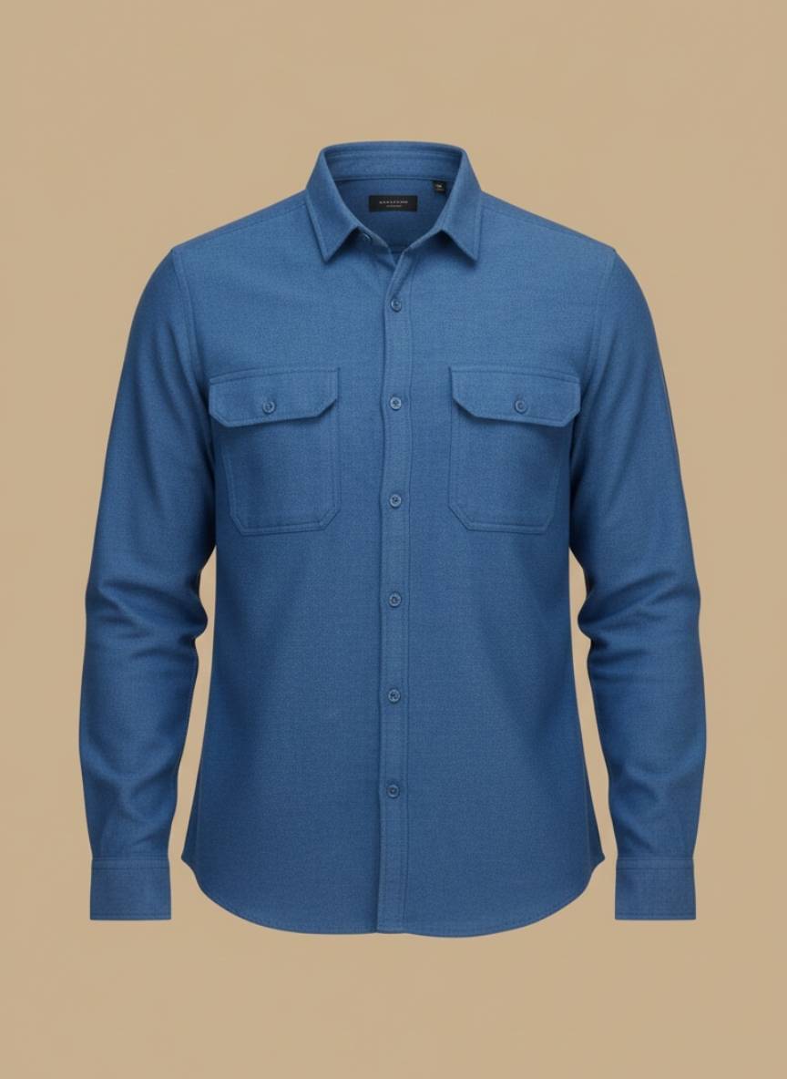 Stylish men’s blue textured button-up shirt with two chest pockets. Comfortable, modern, and versatile for casual to semi-casual occasions.