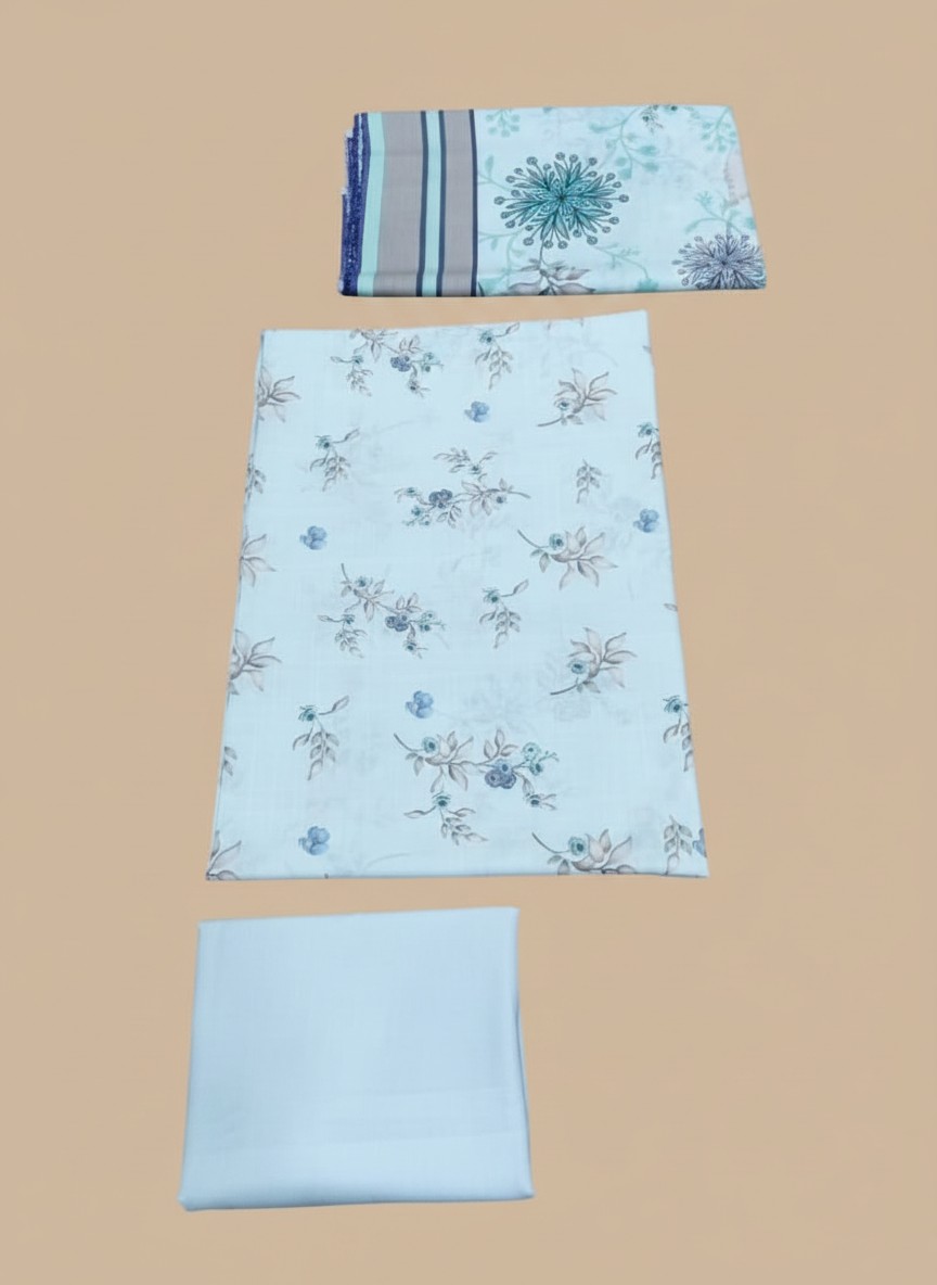 Stay warm and fashionable with our 3-piece Winter Wool Embroidered Unstitched Suit in a lovely blue floral print. This customizable wool suit includes embroidered shirt fabric, a matching dupatta, and plain trouser fabric, perfect for creating your unique winter ensemble.